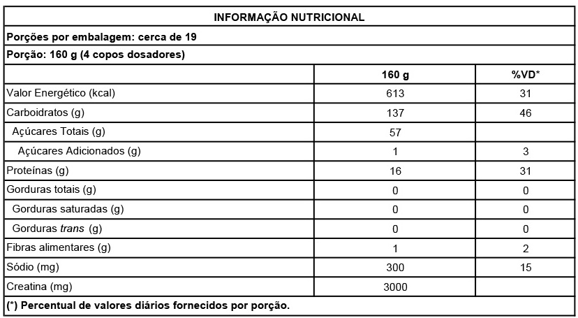 - Fórmula completa: com blend proteico e creatina, sem adição de soja.